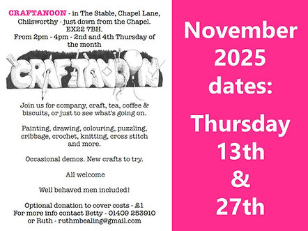 For more information on the above please look on Chilsworthy Methodist Church Facebook page.